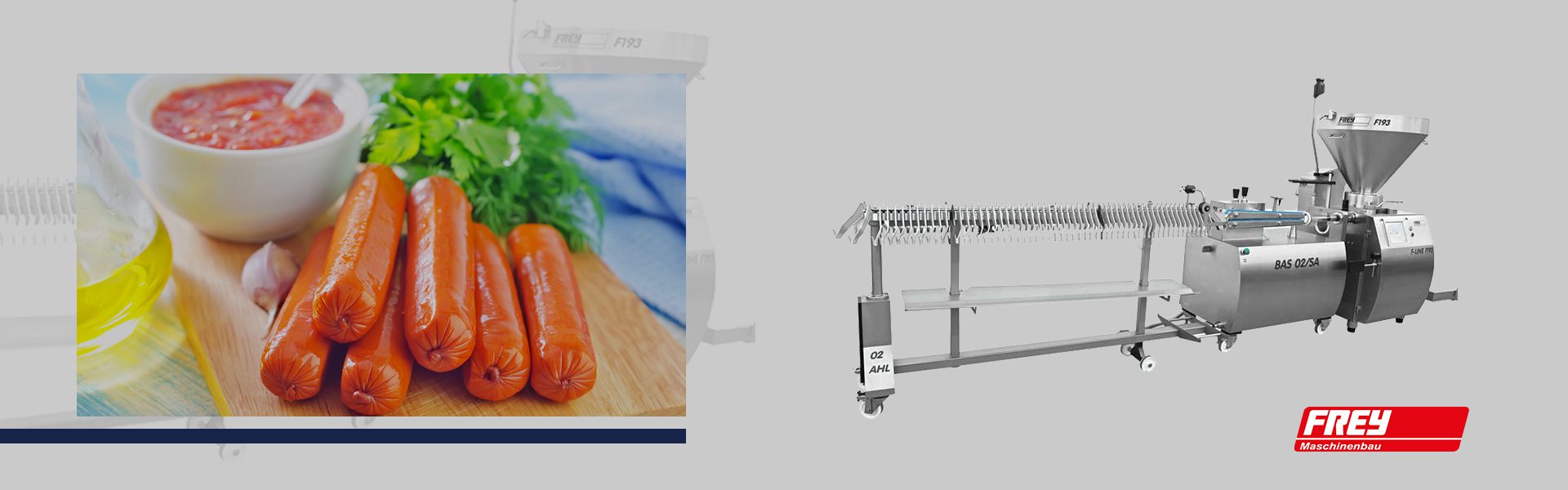 Per la produzione industriale di Würstel, la linea Frey con sistema di attorcigliatura e appendimento permette di raggiungere prestazioni produttive superiori. I sistemi sono adatti per budelli artificiali, cellulosici, di collagene e naturali. Queste attrezzature possono essere connesse alle insaccatrici sottovuoto a partire dalla F-Line F100.