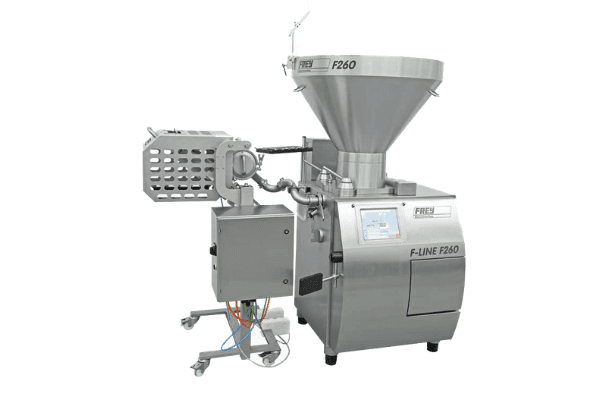 Linea per la porzionatura e la formatura di polpette di forma arrotondata, crocchette, cevapcici e altri prodotti cilindrici similari. Collegato all’insaccatrice, il sistema Frey linear FLD a 4 uscite, consente un taglio rapido e preciso.