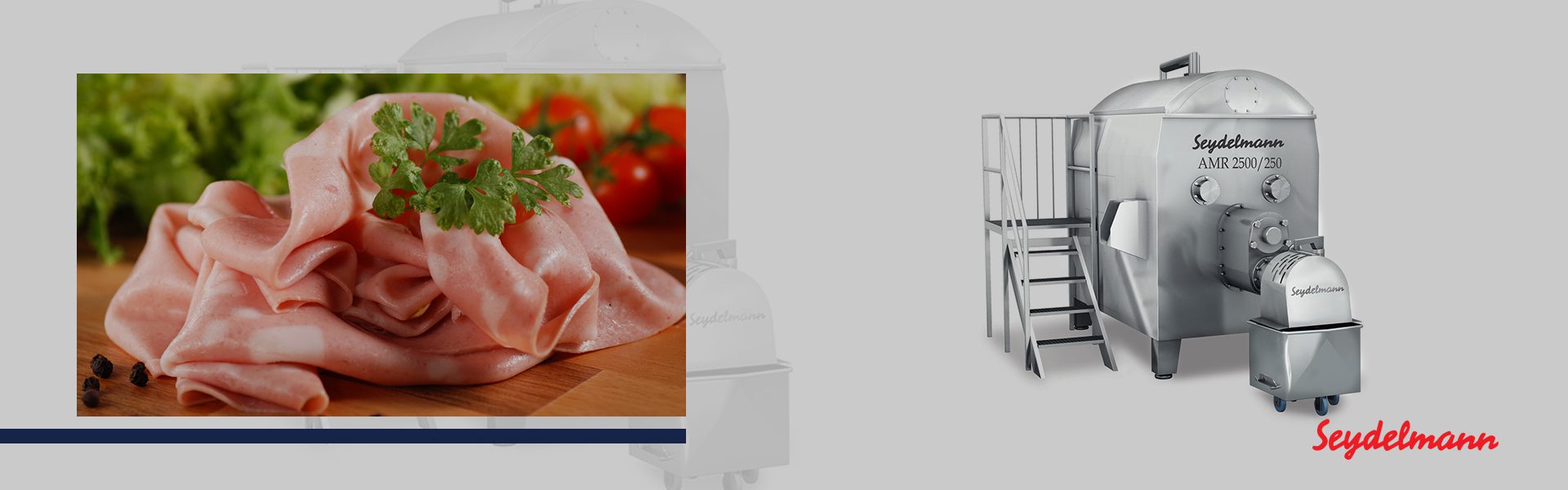 I tritacarne Seydelmann con vasca di pre-miscelazione AMR 1800, AMR 2500 e AMR 3500 sono realizzati per elevate capacità produttive, con una capacità della tramoggia fino a 3.500 litri.