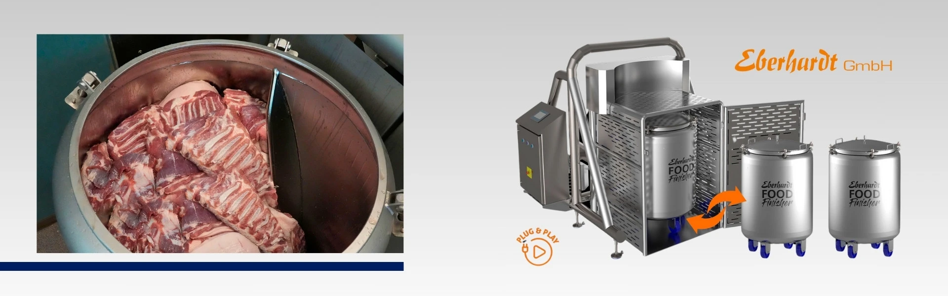 La Zangola Food Finisher Eberhardt è il tuttofare ideale per lavorazioni sottovuoto in continuo, per la salatura, marinatura e miscelazione, ottimizzando il colore e la tenerezza dei prodotti! Progettata specificamente per i sistemi di pressatura alimentare Eberhardt, rende il processo di finitura dei prodotti efficiente e sicuro.